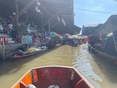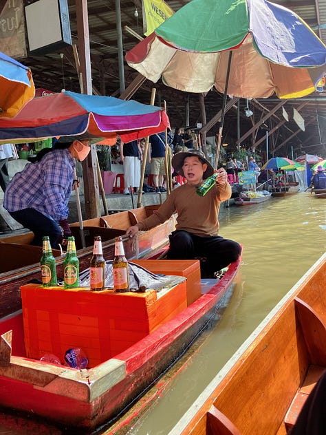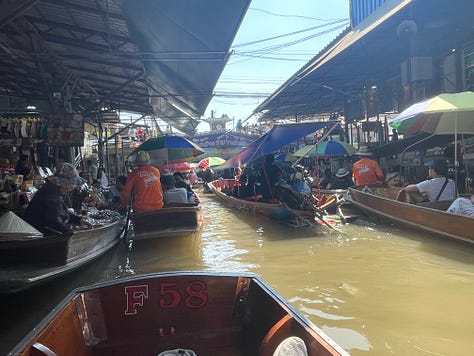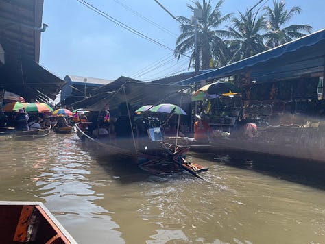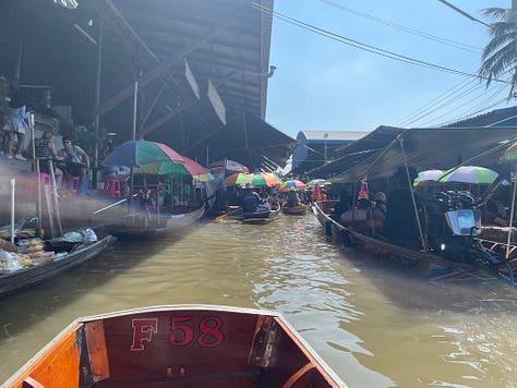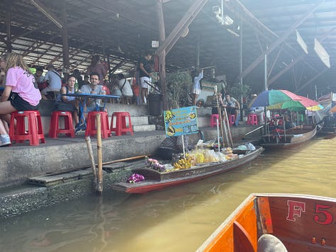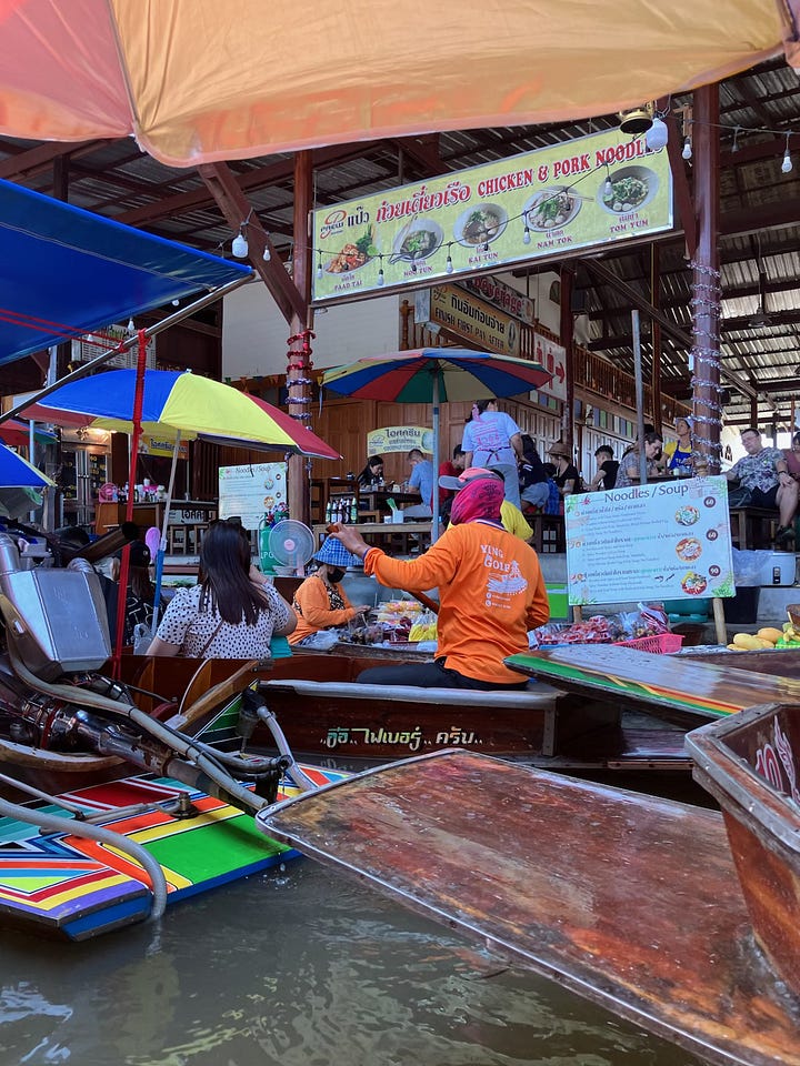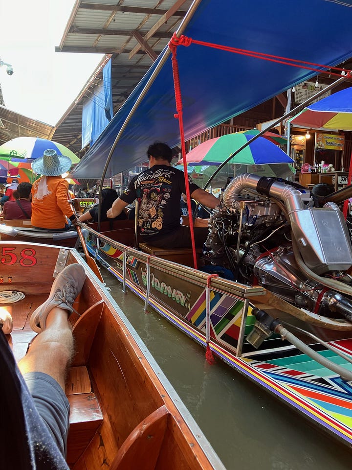 The vibe? Less charming, more chaotic. Most vendors weren’t even on boats—they were stationed on the shore, yelling at tourists to buy trinkets. To make matters worse, some of the long-tail boats were motorized, outfitted with automobile engines that belched fumes into the already crowded waterways. By the end of the circuit, we were quite literally exhausted.
